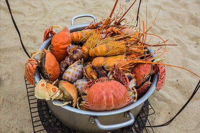 Vous êtes dans la capitale vietnamienne du homard. Rendez-vous dans larue des fruits de mer (Bo Ke)qui longe le fleuve pour choisir des homards vivants dans les bassins et les faire griller avec du beurre à l'ail pour une fraction du prix pratiqué chez vous.